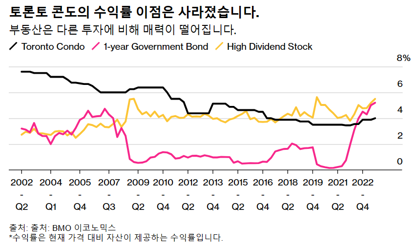 건설 전 주택을 구매하는 투자자들은 지난 10년 동안 개발업체의 주요 자금 조달원이 되었으며, 이러한 투자자들의 감소로 인해 이미 토론토와 같은 도시에서 계획된 수천 채의 주택이 지연되거나 취소되었습니다. 캐나다의 주택 시장은 이미 공급이 부족한 상태이기 때문에 금리 인상에도 주택 가격이 놀라울 정도로 탄력적인 것으로 나타났으며, 예상되는 건설 둔화는 주택 공급 부족을 더욱 악화시킬 수 있습니다.