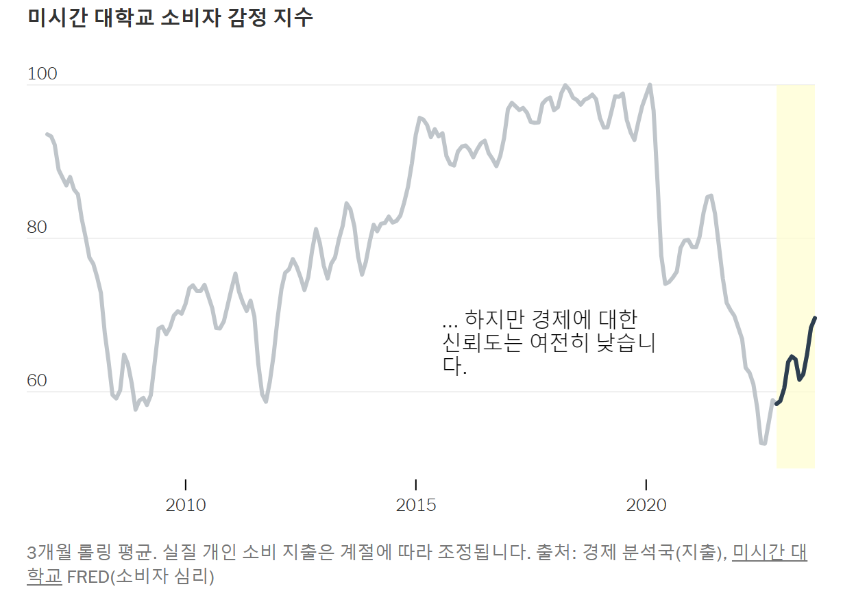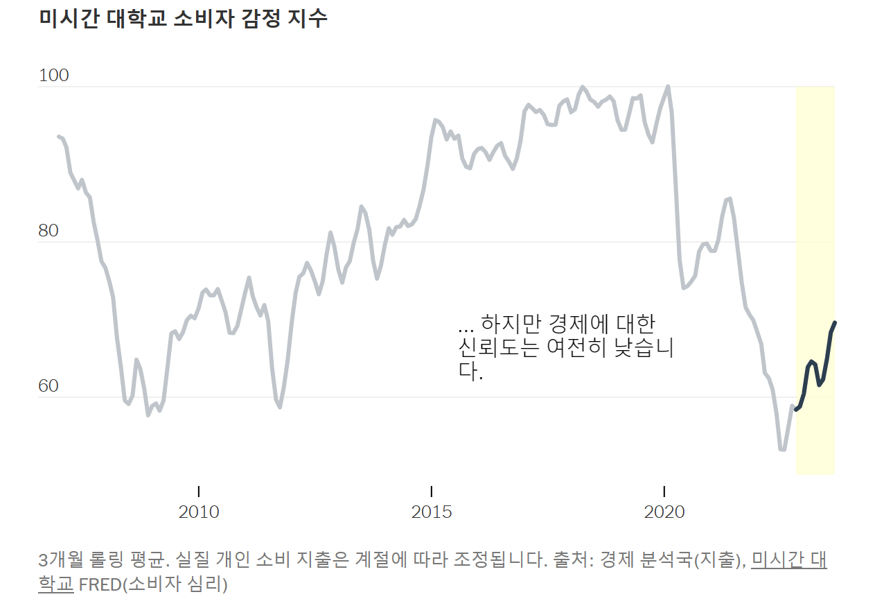 - 경제 불만: 미국인들은 경제 지표가 강하고 개인 재정이 양호하더라도, 물가 상승, 팬데믹, 정치 등에 대해 화나고 불안해하고 있다. 이는 경제에 대한 태도에 영향을 미칠 수 있다.
