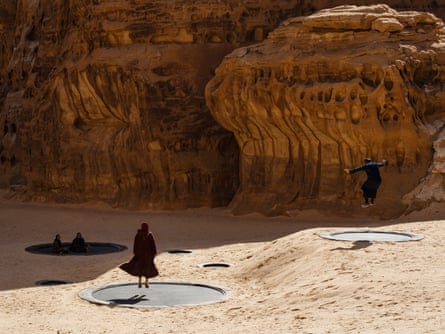 런던의 화이트채플 아트 갤러리에서 21년 동안 디렉터로 일한 이원나 블래즈윅은 "우리는 이곳의 상황을 바꿀 수 있다고 생각한다"며 "특히 여성들에게 도움이 될 것"이라고 말합니다. 그녀는 사우디에서 일하는 많은 서양인처럼 발목, 손목, 목까지 내려오는 전통 의상인 아바야의 스타일리시한 버전을 입고 있지만 머리는 가리지 않고 있습니다. 우리 주변에는 달이나 화성이 아닌 낯선 행성에서 온 듯한 지역 지질의 절벽과 기둥의 화려함과 바람에 깎인 짐승과 얼굴을 연상시키는 형태가 펼쳐져 있습니다. 저희는 알울라 북서부 지역에 위치한 2년 된 하비타스 리조트에 머물고 있는데, 이 리조트에는 침실이 하나씩 있는 96개의 고급 오두막이 마치 고급 저밀도 트레일러 파크처럼 건조하지만 장관을 이루는 계곡에 흩어져 있습니다. 인피니티 풀에서 삼각대가 달린 휴대폰 앞에서 포즈를 취하는 인플루언서들이 '슬픔의 삼각지대' 분위기를 자아냅니다. 이곳은 대중의 상상 속 사우디아라비아가 아닙니다.