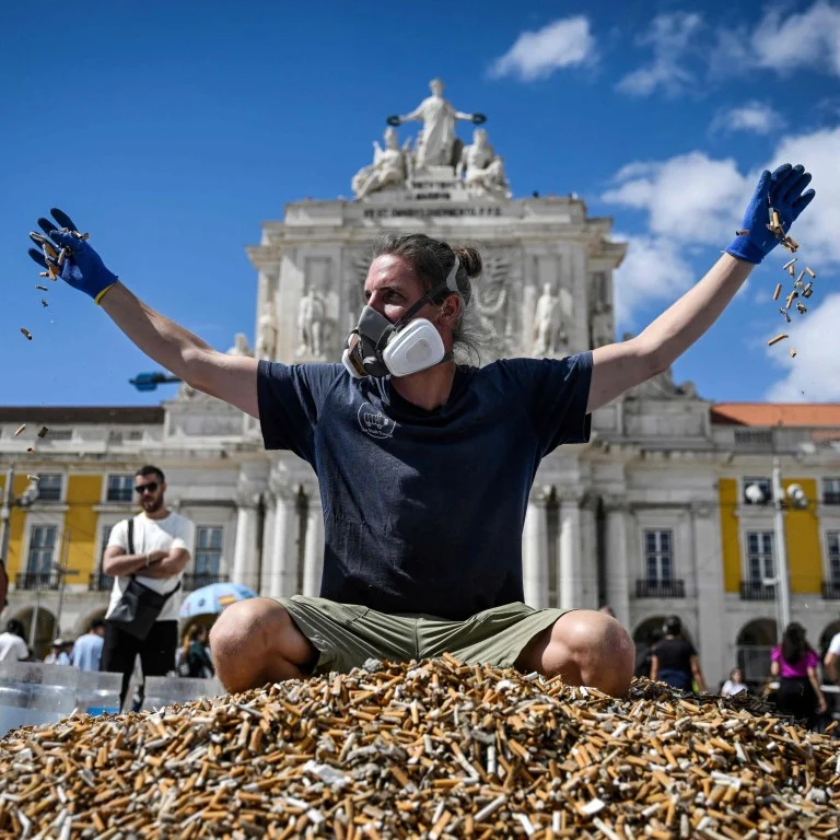 - 담배꽁초 오염에 대한 인식 증진: 기후 활동가들은 65만 개의 담배꽁초를 모아 리스본의 중심부에 쌓아 놓았습니다. 이들은 담배꽁초가 분해되지 않고 유해한 독소를 방출하는 플라스틱 오염의 한 형태라는 것을 사람들에게 알리고자 했습니다.