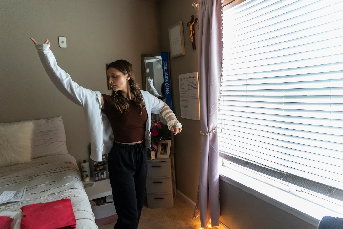 대학 4학년이지만 여전히 수년간의 트라우마를 겪고 있는 듀발은 자신의 매력을 순식간에 잃을 수 있다는 것을 알고 있습니다. 그녀는 수업에 서두르거나 농구 경기 관중석에 앉아있을 때, 같은 반 친구들이 자신을 지켜보는 것을 느낄 수 있다고 말합니다.