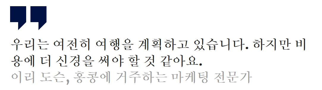 앞으로의 어려운 경제 상황은 아시아 소비자들의 여행 선택에 계속 영향을 미칠 것으로 보이며, 많은 사람들이 몇 달 전에 미리 여행을 예약하거나 출발 전 가격 하락을 기대하며 마지막 순간까지 기다릴 것으로 보입니다.