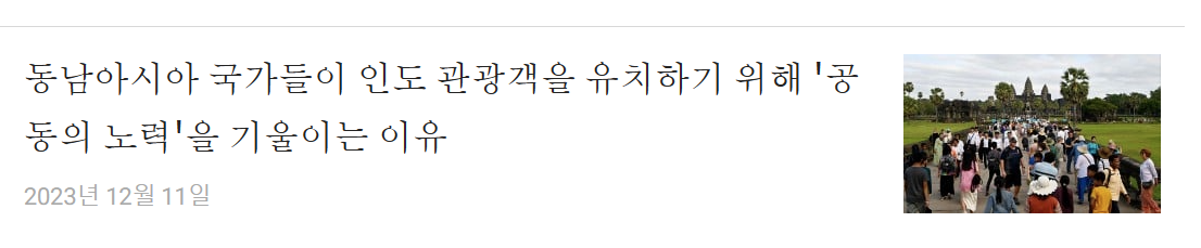 - 동남아시아 국가들은 미국이나 유럽과 달리 인도인의 비자 발급이 상대적으로 쉬워 올해 관광 산업이 반등할 것으로 기대됩니다.