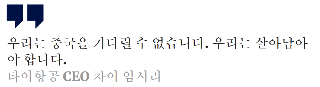 "우리는 중국을 기다릴 수 없습니다. 우리는 살아남아야 합니다."라고 타이항공의 CEO인 차이 암시리(Chai Eamsiri)는 지난달 아시아태평양 항공사 협회 회의에서 이 항공사가 수요가 더 많은 유럽으로 노선을 전환한 이유를 설명하며 This Week in Asia에 말했습니다.