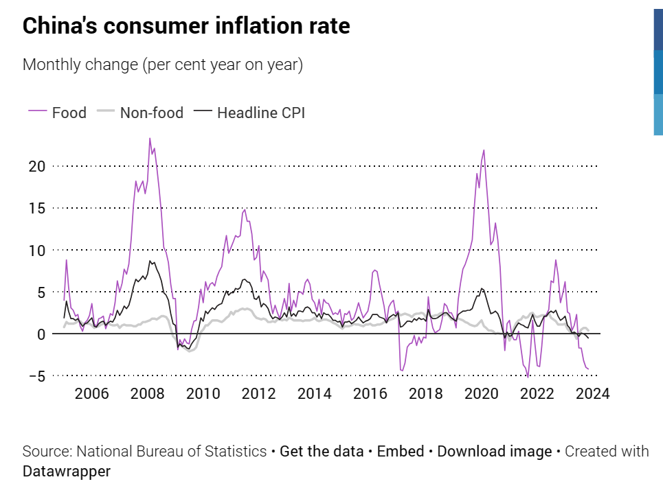 청은 부동산 가격 하락이 이미 중국 주택 소유주들의 자산에 영향을 미쳤으며, 디플레이션은 경제에 "재앙"이 될 것이라고 지적했습니다.