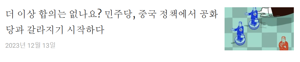 - 2024년 선거를 앞둔 정치적 동기: 두 정당은 중국 문제를 국내 정치적 이익과 우선순위에 맞춰 사용하고 있으며, 중국과의 경쟁보다는 국내 정책에 더 집중하려는 경향이 있다.