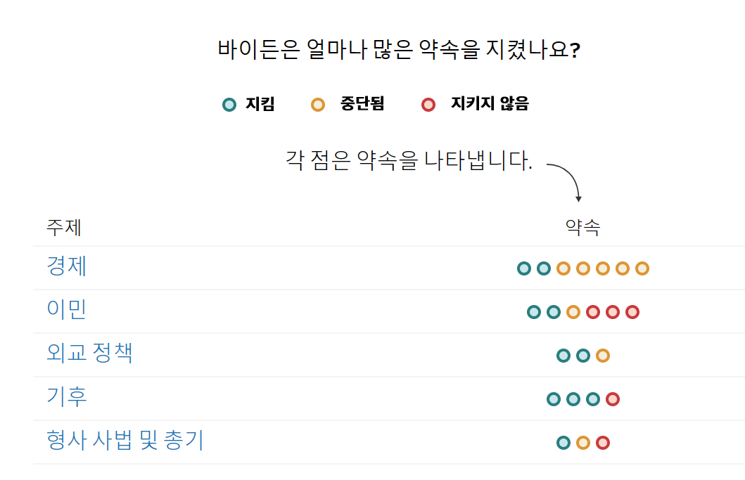 조 바이든이 지킨 선거 공약과 어긴 공약들