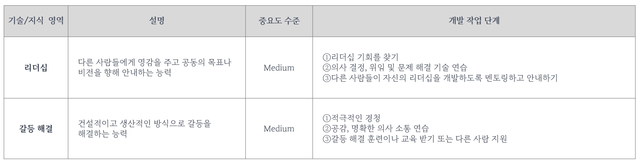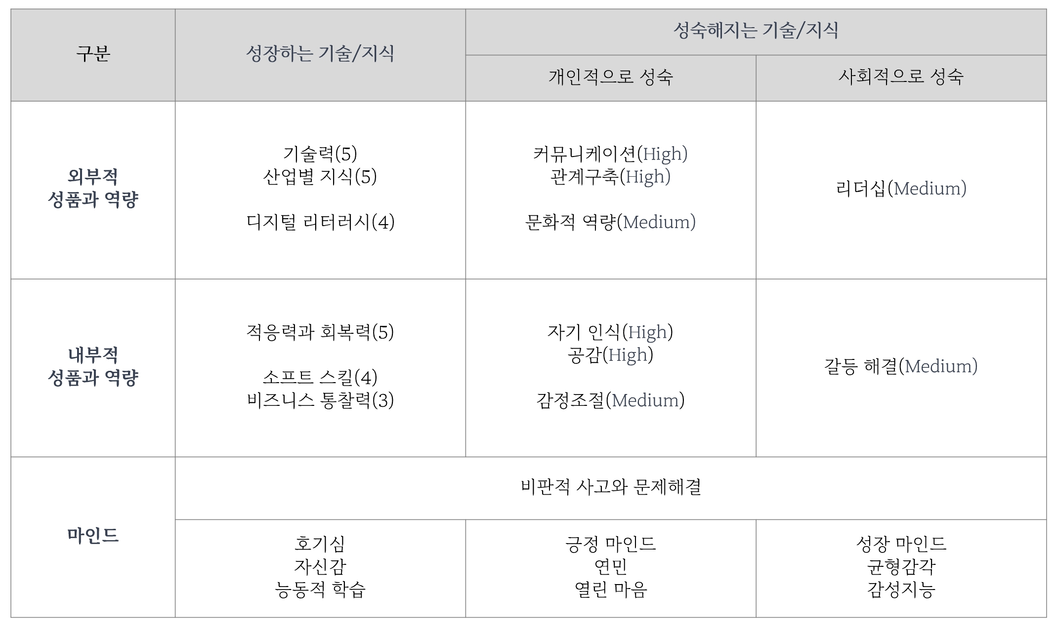 내부적인 역량은 적응성과 회복력이 중요하다. 불확실한 상황에 놓였던 적이 많았냐 또는 적었냐로 평가해 본다. 그리고 소프트 스킬과 비즈니스 통찰력은 기회가 있어야 가능한 것이기 때문에 기회가 있었다면 평가해보고, 피드백도 받아보는 것이 좋다. 무엇보다 기회를 찾아야 한다.