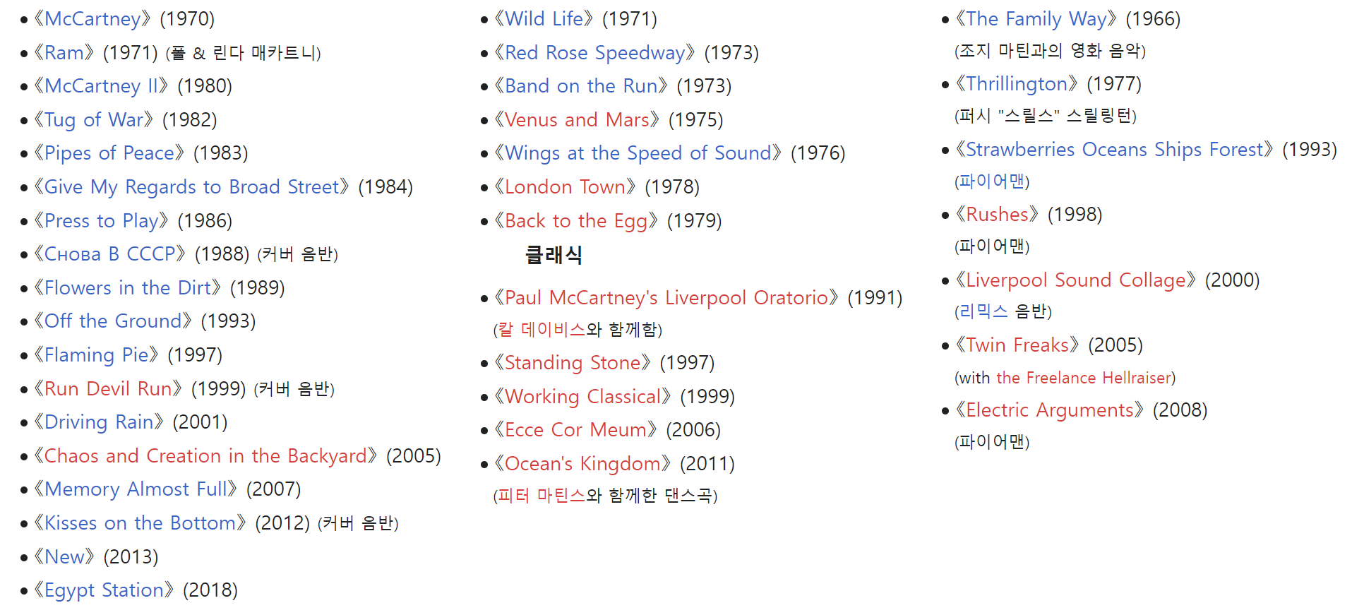 | 폴 매카트니 - 비틀즈의 멤버 | 솔로 아티스트로서 공연, 투어, 신곡 발표 지속 | |