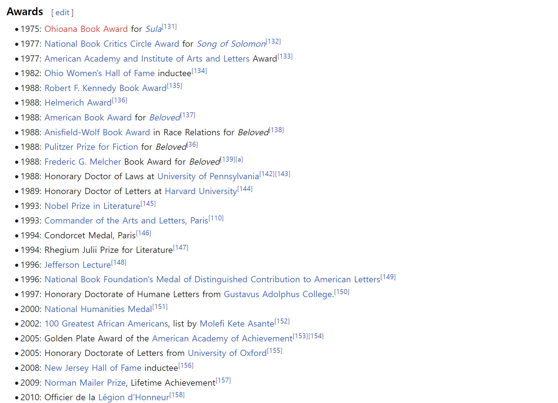 토니 모리슨 - 1970 년에 출판 된 첫 번째 소설 "가장 푸른 눈" | 후기 작품으로 퓰리처상과 노벨 문학상 수상 |
