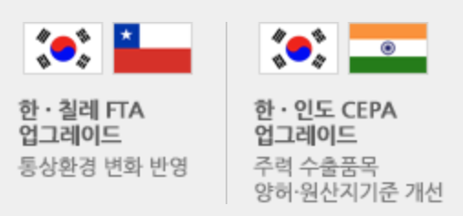 현재 한국은 전자상거래 챕터를 포함한 FTA를 EU, 미국, 중국, 베트남, 콜롬비아, 중미5개국, 영국, RCEP, 이스라엘, 캄보디아, 인도네시아, 필리핀, UAE, 에콰도르 등 59개국 21건과 체결하였으며, GCC, 우즈베키스탄, 과테말라, MERCOSUR, 러시아, 한중일, 말레이시아, 한-아세안 추가 자유화 등 8개국 8건과 협상을 진행하고 있습니다.