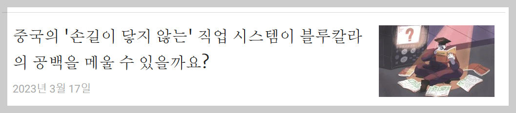 - 중국의 직업 교육 문제: 중국은 숙련된 기술 인력이 부족하고 대학 졸업생이 과잉되는 상황에 직면해 있습니다. 정부는 직업 교육 개혁을 추진하고 있지만, 여러 장애물이 있습니다.
