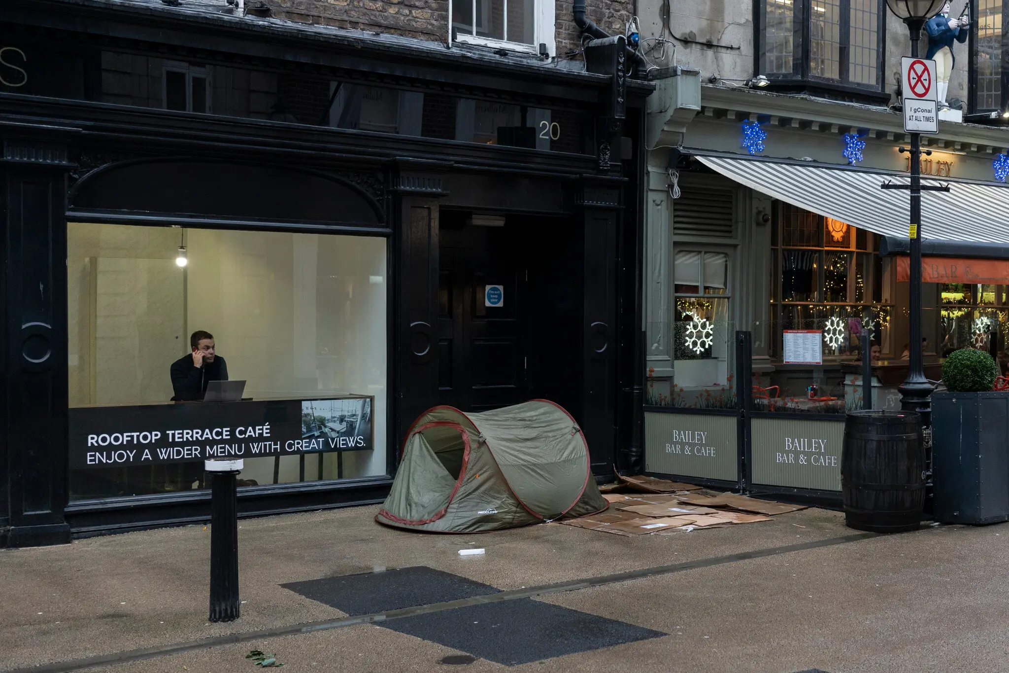 12월, 번화한 더블린의 쇼핑 거리인 그래프턴 스트리트에서 한 중년 여성이 반짝이는 크리스마스 디스플레이로 가득 찬 상점 앞을 지나 자신의 소지품과 침낭, 텐트를 접은 카트를 밀고 지나갔습니다.