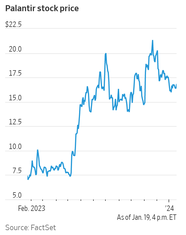 - 팔란티어의 정부 계약 성장 둔화. 데이터 마이닝 전문 기업 팔란티어는 워싱턴에서의 활약으로 360억 달러의 기업가치를 형성했지만, 미국 정부와의 계약에서 성장이 둔화되고 있다.