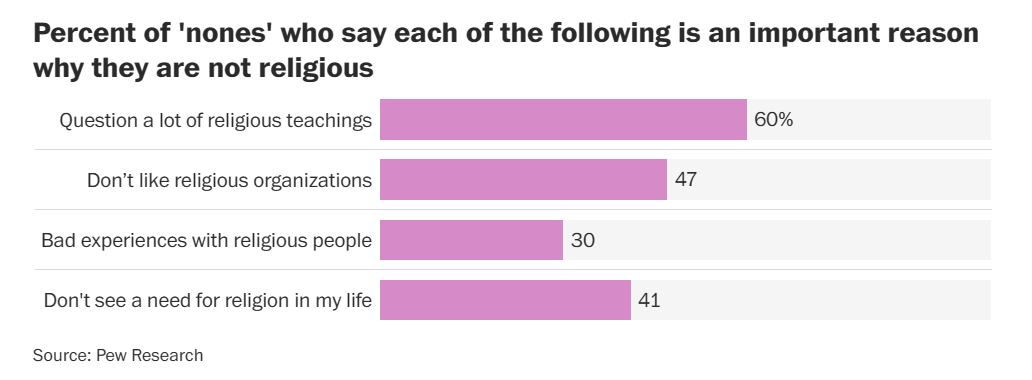 더 많은 미국인이 무종교인입니다. 이들은 누구이며 무엇을 믿고 있을까요?