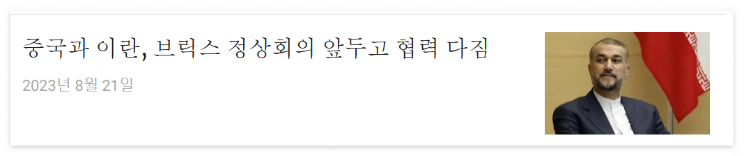 - 중국과 이란의 협력: 두 나라의 외무장관은 이란이 Brics 그룹에 가입하기를 희망하는 가운데, 주하네스버그에서 열리는 Brics 정상회담을 앞두고 협력을 다짐했습니다. 중국과 이란은 2021년에 4,000억 달러의 전략적 협력 협정을 체결했으며, 중국은 이란과 사우디아라비아 간의 관계 회복에도 중재 역할을 했습니다.