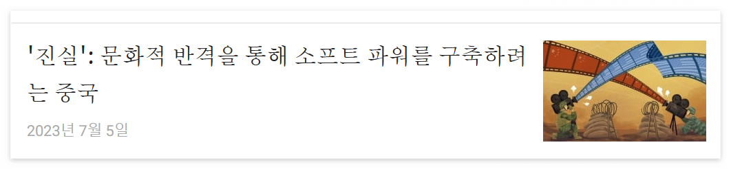 - 중국의 중동에 대한 소프트파워 확장: 중국은 미국의 영향권으로 여겨지는 중동 지역에서 문화적 영향력을 키우고 있다. 중국은 사우디아라비아와 이란 사이의 평화 제안을 중개하고, 이집트, UAE, 이란 등 여러 국가와 중국어 교육 협력을 체결했다.