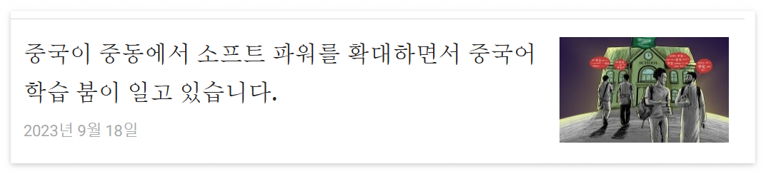 - 중동에서 중국어 교육의 인기 상승: 서방과의 관계 악화로 인해 중국어 학습에 대한 열정이 감소하는 반면, 중동 국가들은 중국과의 협력을 강화하고 중국어 교육을 적극 지원하고 있다.