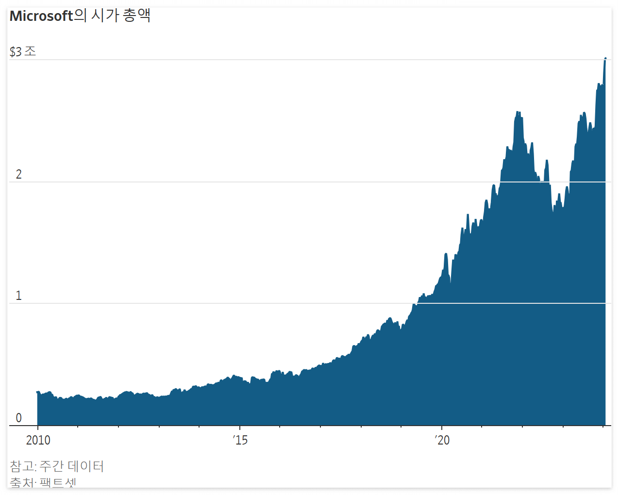- 마이크로소프트의 3조 달러 돌파: 마이크로소프트가 인공지능(AI) 혁명을 이끌고 있는 가장 오래된 기술 회사 중 하나로서, 역사상 두 번째로 3조 달러의 시가 총액을 달성했습니다.