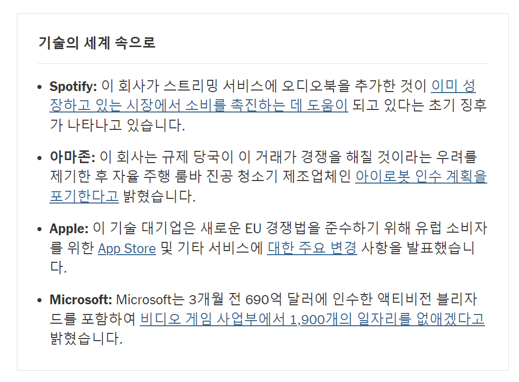 스포티파이, 아마존, 애플, 마이크로소프트와 같은 일부 기술 기업들은 새로운 경쟁법을 준수하기 위해 자사 서비스에 대한 대대적인 변경을 발표했습니다. 팬데믹으로 인해 기술 제품 사용이 최고조에 달했던 시기에 비해 줄어들면서 기술 기업 경영진은 다른 생각을 할 수밖에 없었습니다.