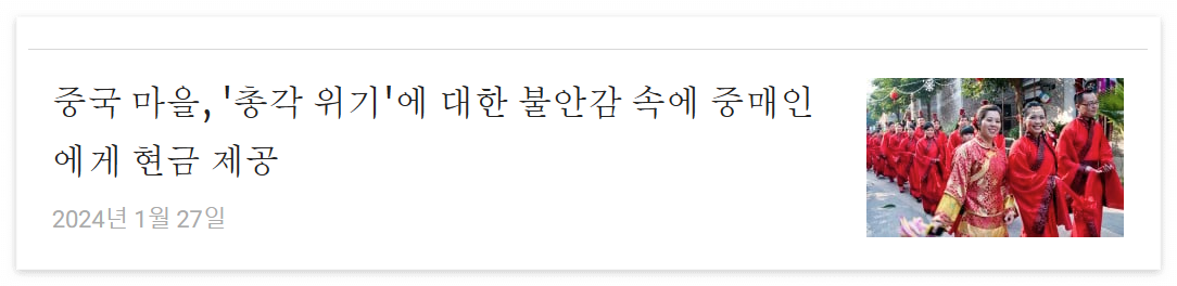 - 인센티브 제공: 중국의 여러 지방 정부들이 미혼 남성들에게 아내를 찾아주는 사람들에게 최대 1,000위안(약 140달러)의 보상금을 제공합니다.