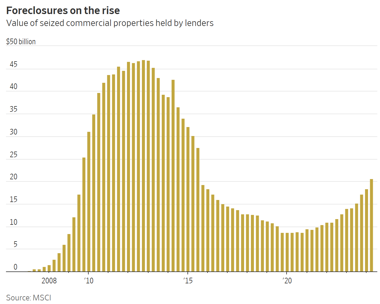 원본 출처 링크: Surge in Commercial-Property Foreclosures Suggests Bottom Is Near - WSJ