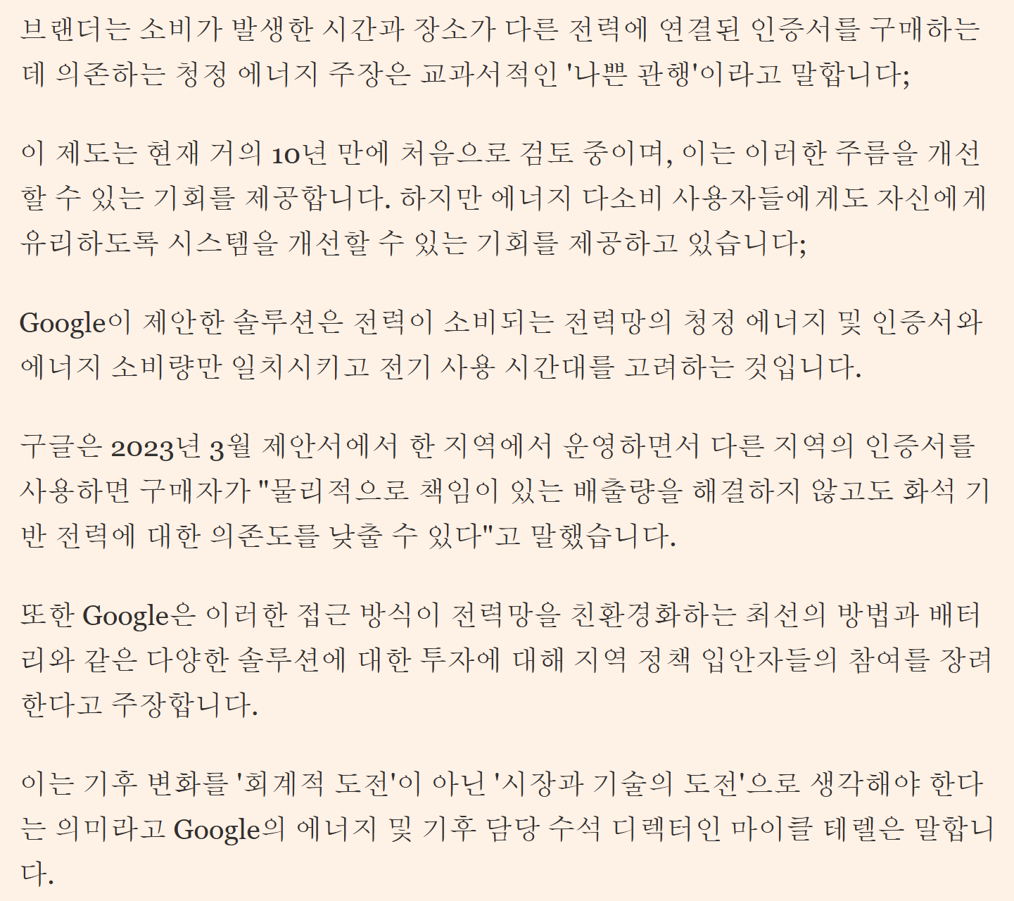 - 유연한 배출량 상쇄 방식: 기존 방식에서는 재생 에너지 인증서(RECs)를 통해 배출량을 상쇄했습니다. 그러나 구글은 더 엄격한 기준을 제시하고 있으며, 지역 및 시간에 따라 정확한 상쇄를 요구하고 있습니다.