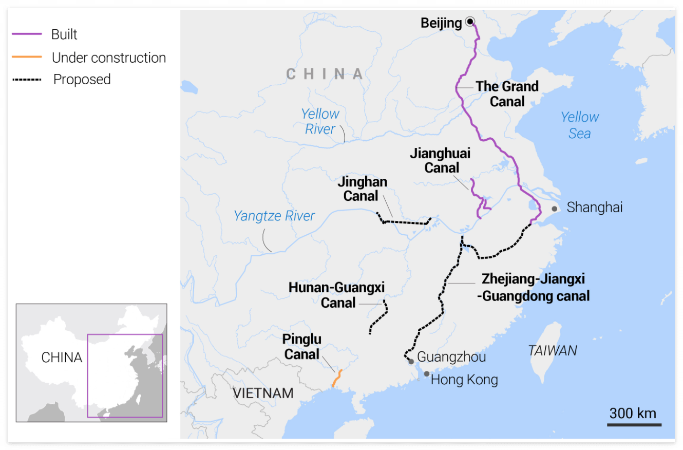 이 기사에서는 중국의 야심찬 운하 프로젝트와 그 잠재적 영향에 대해 설명합니다. 핵심 사항은 다음과 같습니다: