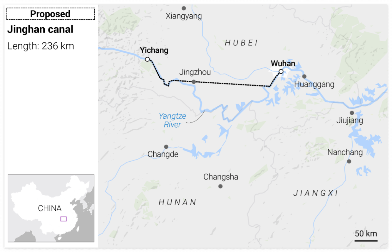 운하 건설을 둘러싼 아이디어는 징한 운하 계획에 박차를 가할 예정인 후베이성 등 다른 성에서도 등장했습니다.