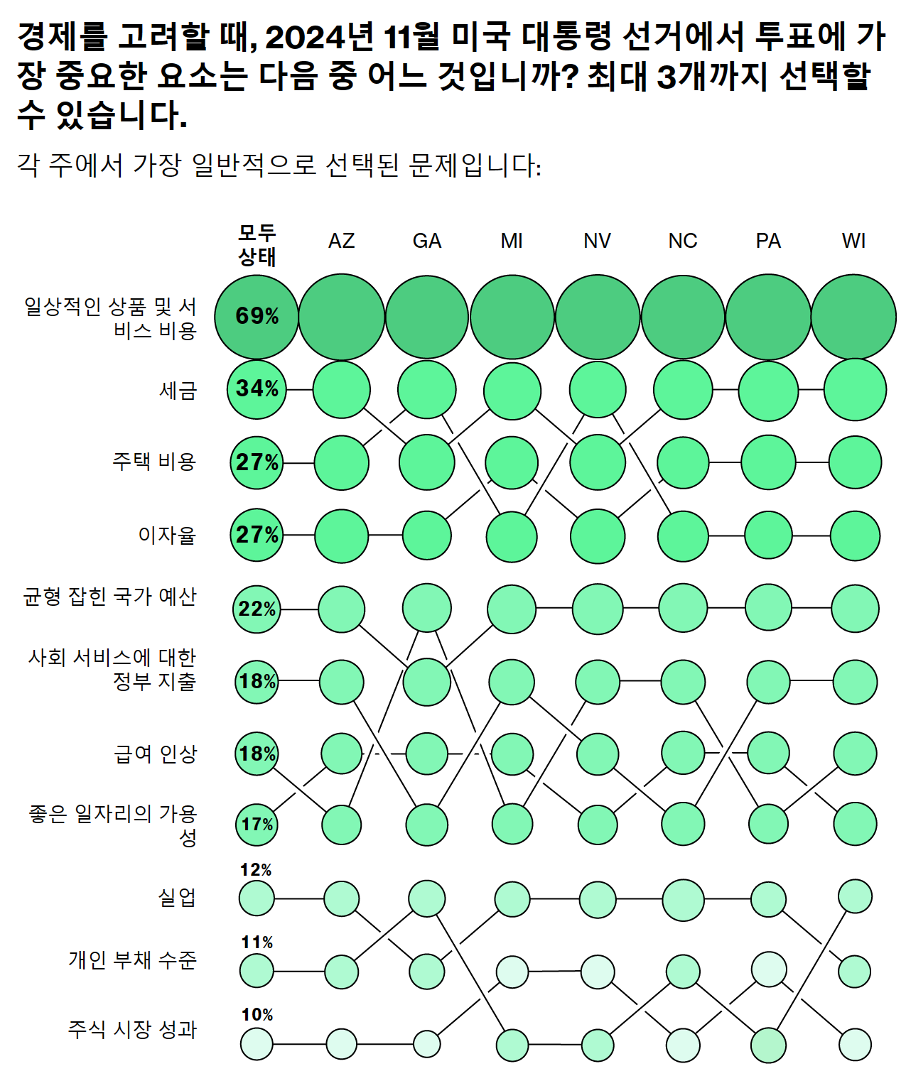 (1) 경제는 스윙 스테이트 유권자들에게 가장 큰 이슈입니다.